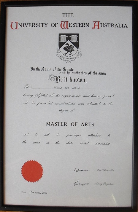 My own thesis for a Master of Arts, awarded by the University of Western Australia in 1980, was titled Heart of Apartness. It is by far the longest piece of writing I have ever accomplished. The subject was misfits – human alienation, as treated by four novelists who set works in Africa. Sidestreams have always interested me more than mainstream. The journalist’s mentality is often to side with people who have difficulty fitting in, so it was not too much of a stretch to follow literary threads of this patchwork. Patrick |